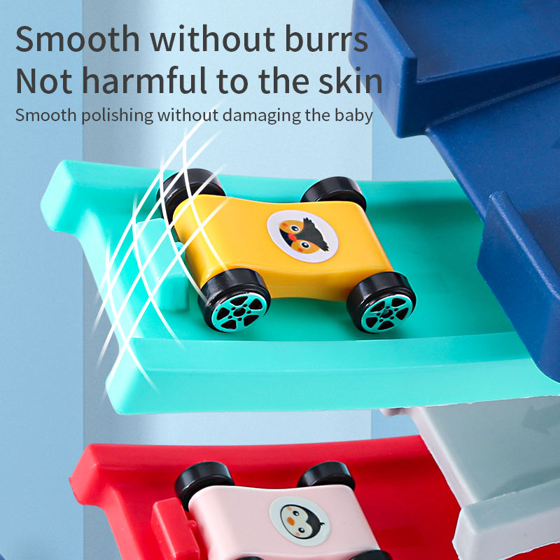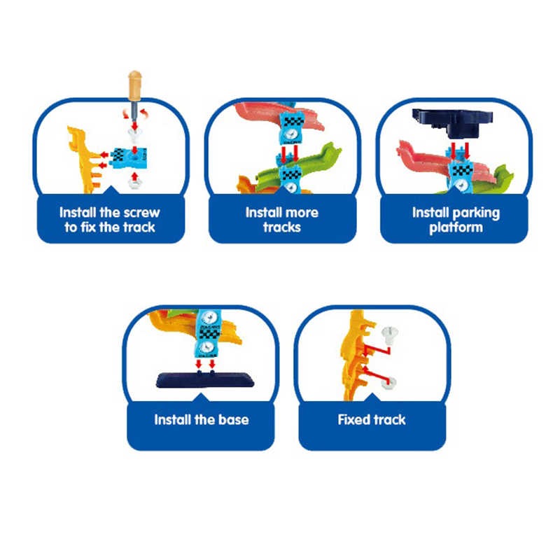 This interactive building toy lets kids assemble their own colorful ramp tower, then watch as marbles or wheels race down in exciting loops and curves.