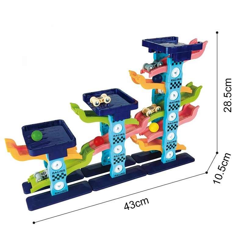 Introduce your child to the thrill of construction and motion with the DIY Rolling Track Tower – 56 Pcs Set!