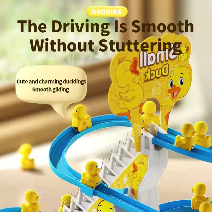 Watch your little one giggle with joy as these adorable ducks climb up the stairs and slide down endlessly! This battery-operated duck track toy is a delightful mix of music, lights, and motion — keeping kids engaged, entertained, and developing skills while they play.