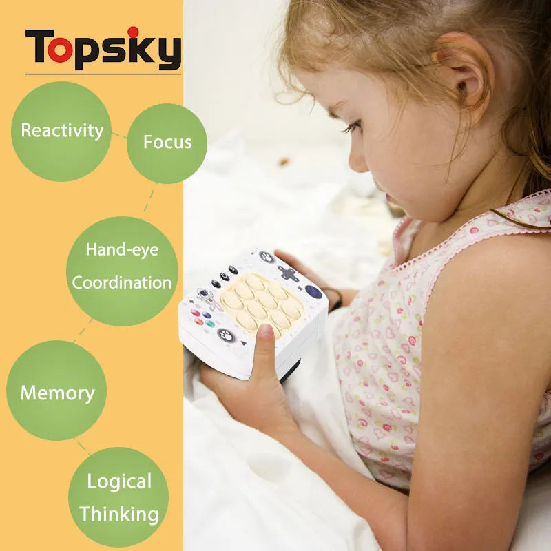 Blast off into hours of fun with the Fast Push Pop Game Console — a space-themed, interactive fidget game designed to sharpen focus, memory, and reflexes! With 4 exciting game modes including level-breaking, memory, multiplayer, and scoring, this toy brings screen-free, educational entertainment to life.