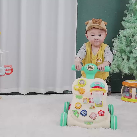 This interactive baby walker is designed to help your little one develop motor skills while having fun. Featuring vibrant colors and various buttons, this walker stimulates your baby’s senses with music, lights, and animal sounds. The sturdy handle allows for easy grip, and the fun design makes it a great choice for early walkers. With engaging features like a gear toy and light-up buttons, this walker helps promote cognitive development and balance